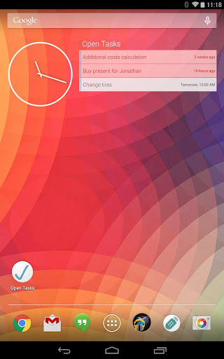 A simple widget allows you to keep track of your currently open tasks from your home screen or lock screen (Android 4.2 and above).