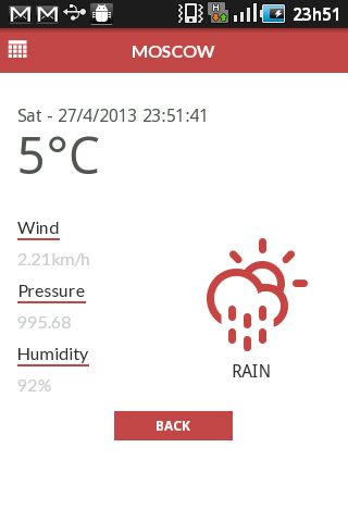 - Detailed weather information including temperature,wind information, pressure, humidity