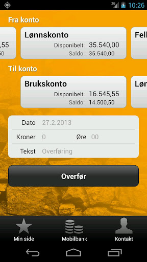 Appen gir deg saldo, siste transaksjoner, overføring mellom egne konti og betalinger til forfall. Du kan også se saldo og siste transaksjoner for dine kredittkort. Som forsikringskunde kan du lagre forsikringskort for reiseforsikring og veihjelp i appen.