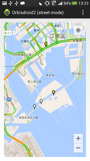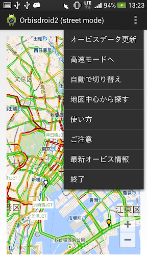 自動速度取締装置(通称オービス)の位置を地図上に表示します。高速道路か一般道を選択してください。GPSで計測した自位置付近のオービスを表示します。高速道路、一般道で一定速度以上でオービスに近づくとアラーム音が出ます。