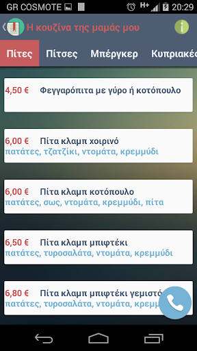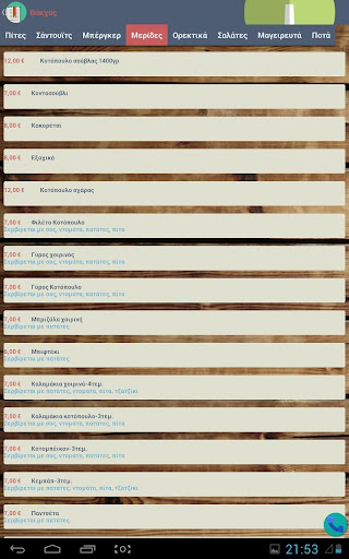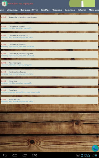Στην εφαρμογή περιέχονται όλοι οι κατάλογοι παραγγελιών των εστιατορίων όπου οι