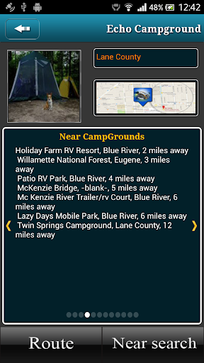 ✔ Provides near by info of each campground (like Golf Course, Lakes, Amenities, Trails, Ski areas, Marinas, Public land, Hotels, Address.)