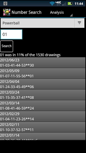 It has a lottery number search. Once you pick the type of lottery you can search for last time that number was drawn and the percent it has been drawn.