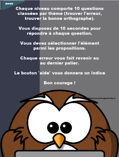 OrthoQuiz, ce sont 200 questions pour tester son niveau d'orthographe et pour développer sa mémoire photographique face à des termes nouveaux. Deux catégories d'entraînement sont proposées: trouver l'erreur, trouver l'orthographe correcte. Des séries de 10 questions organisées selon une difficulté croissante.