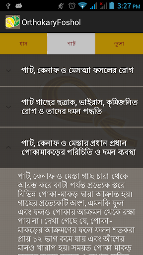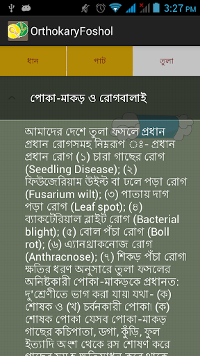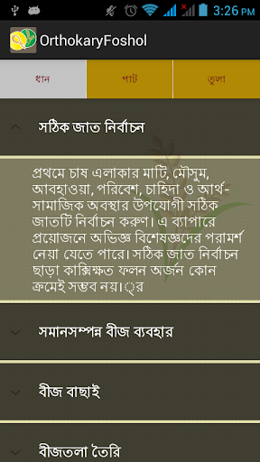By using this app you will know details about how to cultivate the valuable crops such as jute, cotton and rice ? How to select or process the land? How preserve seed of those crops? Criterions to select good quality of seed category wise. How to give fertilizer to the land depending on size and present condition of land?
