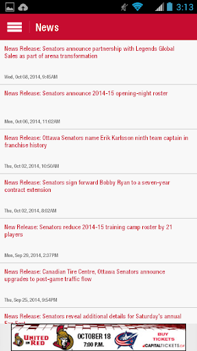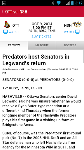 This official app of the Ottawa Senators brings fans closer to the team than ever before. Get live game coverage, player interviews, game previews and recaps, postgame video highlights, enhanced stats, customized game alerts, player profiles and much more! Follow the Senators all season long on your mobile device!