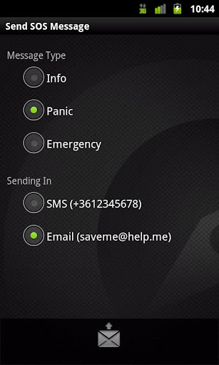 - Info and SOS (Panic and Emergency) messages sending via SMS and to an email address