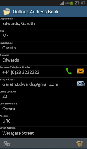 Ever wanted to be able to search, view, phone, text or e-mail ANYONE in your company or organisation on your android device when you are away from the office ? If your organisation uses Microsoft Outlook, this App gives you EVERY employee contact that is on your company server ! Never again will you be without a company phone number when you are away from the office !