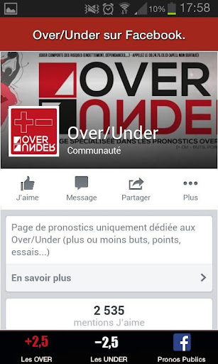 Cette application propose des pronostics sportifs et conseils aux internautes. Le développeur ne peut être tenu responsable de la gestion du contenu de l'application. En aucun cas, les développeurs ou/et propriétaires de cette dernière ne sauraient être tenus pour responsables de tout comportement excessif lié au jeu. Les pronostics sont donnés à titre purement indicatif. Chaque personne ayant téléchargé l’application Over/Under est individuellement responsable de son jeu et de ses paris. Les paris sportifs doivent rester un jeu.