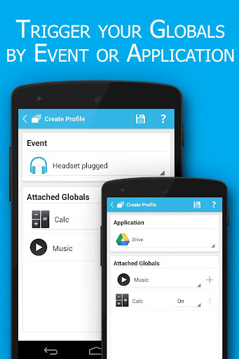 3. Events* - trigger your profiles on event occurrence, for example - automatically float your music player widget when you plug your headset.