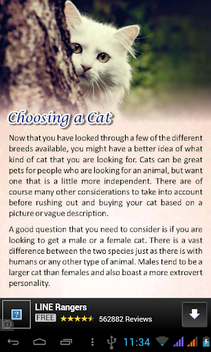 Unfortunately many people adopt this method of getting a cat and later find that the cat does not fit into their lifestyle for a variety of reasons. This is why a certain amount of research needs to be done before you decide on what kind of cat that you want and if you want to start out with a kitten or an adult cat. By reading this book you will be provided with the questions that you need to ask yourself in order to decide on what cat is right for you.