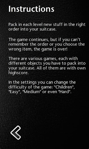 There are various games, each with different objects you have to pack into your suitcase. All of them are with own highscore.