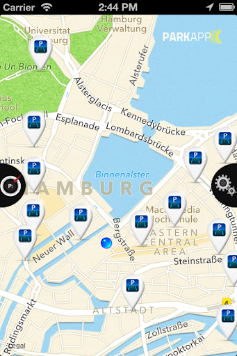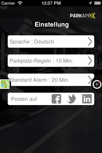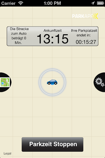 Mit The PARKapp, oben auf der Funktionalität der einen Alarm, wenn Ihre Parkzeit abgelaufen ist, und Ihren Auto wieder zu finden, können Sie jetzt einen Parkplatz in die nähe Ihren Ziel zu finden. Durch Drücken von "Parkplatz finden" finden Sie eine Karte von die Parkplätze (Radius 5km) zu bekommen. ERINNERN, DASS kontinuierliche Verwendung von GPS, REDUZIERT Akku-Laufzeit auf Ihren Gerät.
