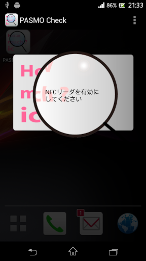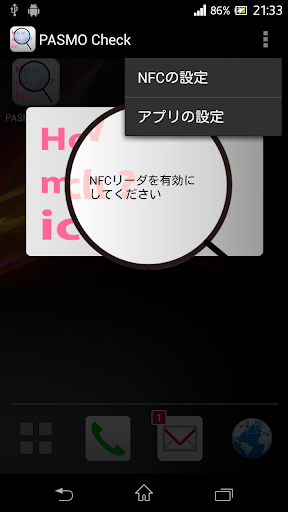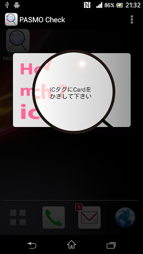 ・NFCが有効であれば、パスモをICタグにかざすと自動でアプリが起動して残高が表示されます。