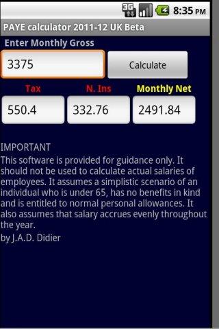 This software is a PAYE ready reckoner for UK use only. It has a default tax code, representing the 2011-12 tax free allowance of £7,475 per annum.