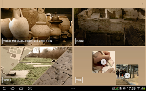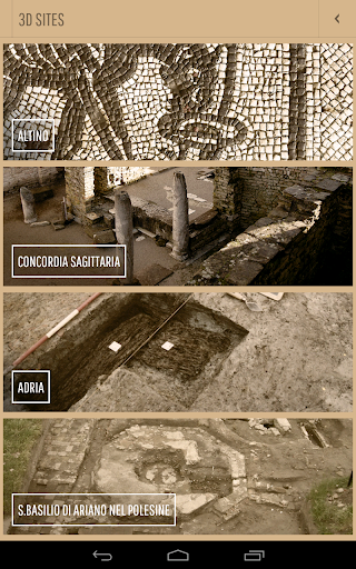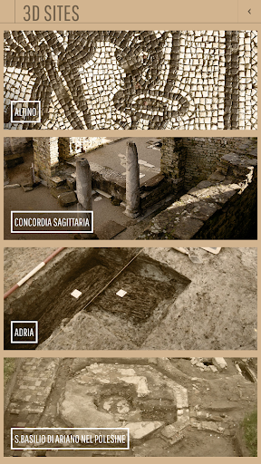 The Mobile App allows to access the information regarding the archaeological sites of Altino, Concordia Sagittaria, Adria and San Basilio di Ariano nel Polesine as well as further documents and multimedia material.