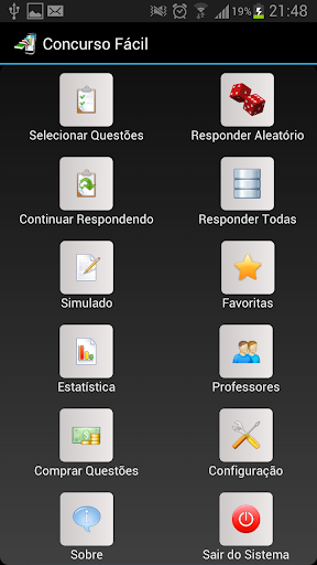 * Você tem duas opções para adquirir os pacotes com questões para o Concurso Fácil: Google Play ou diretamente pelo seu celular no ícone "Comprar Questões".