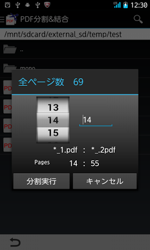 1つのPDFファイルをページで区切って2個のPDFファイルに分割を行います。