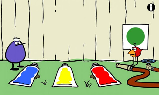 Paint Splat offers kids the opportunity to experiment with mixing colors or match a color Chirp holds up a on a card. If the color orange, purple or green (which make up the secondary color group) is successfully created, Chirp offers some of the harder-to-mix tertiary colors. Like many of our games, this one gets harder only if the player is succeeding.