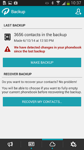 For your peace of mind, just after downloading the app we backup your contacts, so that if you are not satisfied with the it, you can roll back to the original state without any problems.