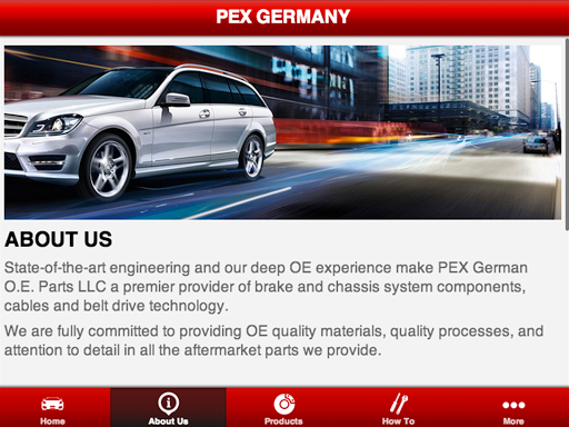 The purpose of the app is to provide and overview of PEX brake wear sensors, what they are, how they work, when they are needed or required, and why PEX would be the best choice. This app will connect users to Pex and all their online platforms.