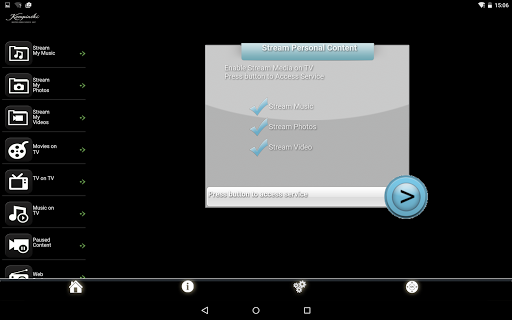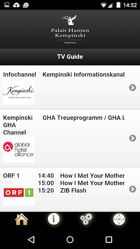 PHK (Kempinski Hotels) PMN application enables Kempinski Hotels and their guests to enjoy a great experience during the hotel stay by integrating and unifying content and devices, into a single entertainment and services network. PHK-PMN app enables your Smartphone or tablet to stream guest personal video, photo, music content, as well as content from social networks like Facebook and Google+, anywhere in the hotel through WiFi on to the in-room television. Once the device is synced to the in-room television system it provides access and control to on-demand movies stored on the hotel’s Quadriga Sensiq entertainment system, and if licensed and approved by the studio, accessed with the PHK app and played on the mobile device.