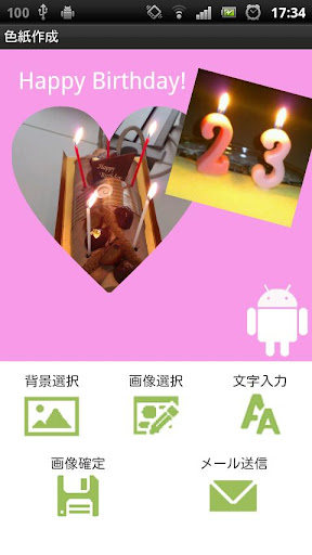 持っている写真や画像を背景と組み合わせて画像を作り、気持ちを伝えたい人に送れます。