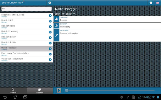 Just a simple click and, without going online, you can listen to the right pronunciations of those difficult unfamiliar names of all major authors and poets (ranging from Marina Ivanovna Cvetaeva to José Saramago), influential philosophers (such as Gilles Deleuze or FriedrichLudwig Gottlob Frege), and great musicians (like Zbigniew Preisner and Antonín Dvořák).