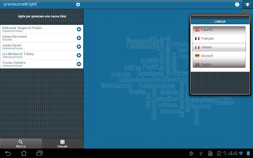 * Ability to search by name, language and category (music, literature / poetry, philosophy)