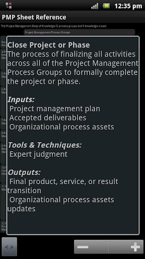 This application is a derivative work of A Guide to the Project Management Body of Knowledge (PMBOK® Guide) – Fourth Edition, which is copyrighted material of and owned by, Project Management Institute, Inc. (PMI), Copyright 2012. This publication has been developed and reproduced with the permission of PMI. Unauthorized reproduction of this material is strictly prohibited. The derivative work is the copyrighted material of and owned by, “PMSheet”, Copyright 2012.