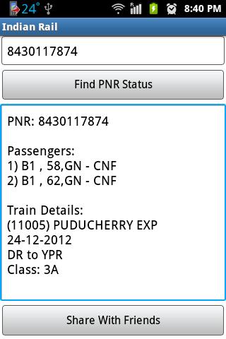 Very easy to know & share your Indian Railway Ticket Booking & Current status.