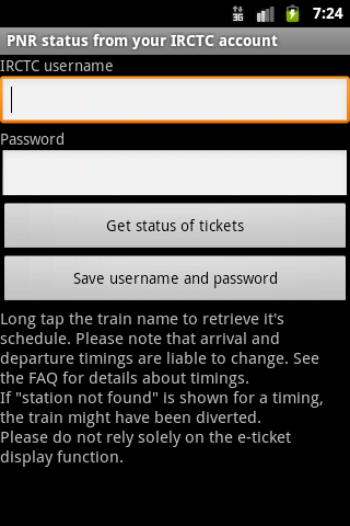 You can also enter your IRCTC username and password and it will get the ticket status of all printable tickets from your IRCTC account. All communication with your username and password is fully encrypted with SSL, RSA and/or AES encryption methods.