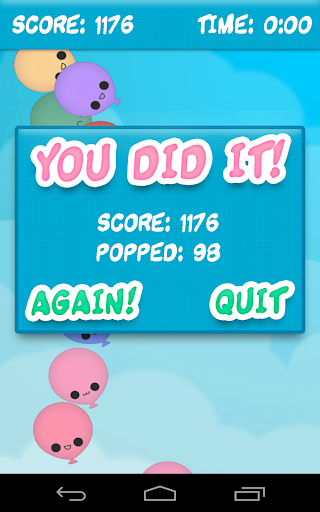 你只有60秒的点击和弹出所有的气球!要小心,因为气球会越滑越快,随着时间的过去。 :)