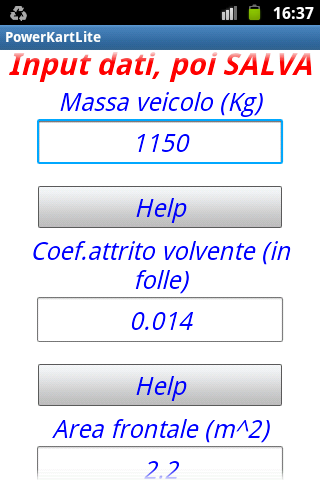 Help spiega l’utilizzo, suggerisce le impostazioni per auto, kart e moto.