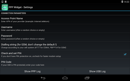 !! Attention !! Newer Google devices with stock Android > 4.2 have kernel module loading disabled. PPP Widget will most likely not work on these. Try PPP Widget 2