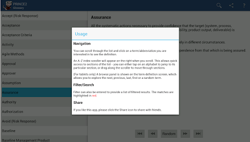 Confused by PRINCE2 terms? Want to find out the meaning in seconds? PRINCE2 Glossary is a simple mobile reference to help you quickly find the meaning of PRINCE2 terms.