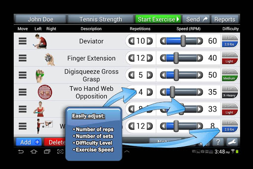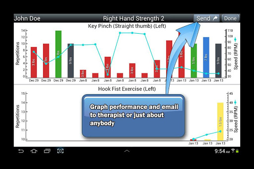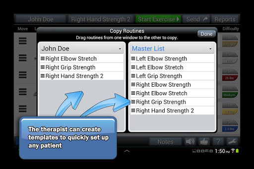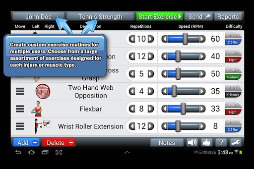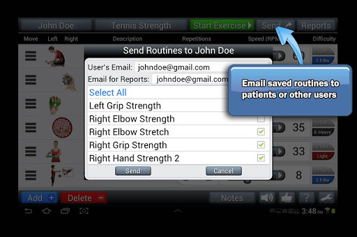 * Custom exercise routines can be easily emailed to the patient to be used on their mobile device