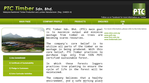 PTC Timber Sdn. Bhd. is one of the large logs and timber manufacturer in Malaysia. Our products are main Dark Red Meranti (DRM) wood products. PTC Timber Sdn. Bhd.is a Malaysian Timber Certification Scheme, MTCS "Requirements for Chain-of-Custody Certification" (RCOC) certified timber logs manufacturer. Please browse through our Company Profile and Photo Gallery to know more about our procedures and products. We can be contacted via the Enquiry tab.