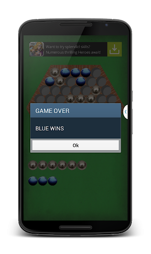 A player can PUSH BACK their opponent′s marbles which are in an adjacent space to their own with an in-line move only. They can only PUSH BACK if the pushing line has more marbles than the pushed line (three can PUSH two or one; two can PUSH one). Marbles must be pushed into an open space (i.e. not blocked by a marble of either color). The winner is the first player to gain six opposing marbles from the opponent.