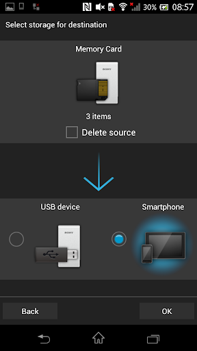 - Copy files between memory card inserted into PWS, USB device connected to PWS and Android device that you are operating.