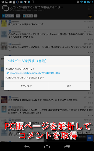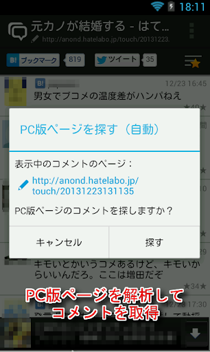 ・コメントの少ないスマートフォン専用サイトでも、PC版ページのコメントを探すことが可能(精度はぼちぼちです)