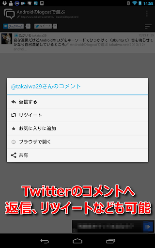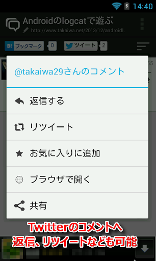 お気に入りのコメントがあれば、★を付けたり、Twitterならリツイート、返信などが行えます。