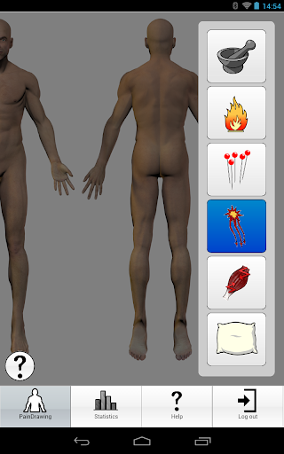 You can use PainDrawing as a diary to follow the development of pain symptoms. This can help you identify how specific factors, activities and conditions influence pain and how it develops over time. In some cases a structured pain history can help doctors make a diagnosis. PainDrawing can also be used in scientific studies, to evaluate effects of activities potentially triggering or reducing pain.