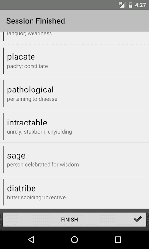 NOTE: you can manually mark a word as 'mastered' by long tapping on it in the word list. A mastered word will still show up in rare occasions.