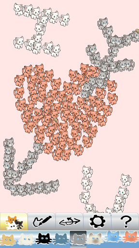 Paint pictures that are made out of living cats! Draw with your finger and different coloured cats appear -- you can herd them around, change their color, and save a picture made of adorable cats!