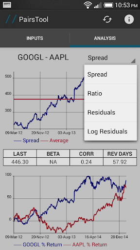 PairsTool brings mobility to financial pairs analysis. Compare returns over time, analyze multiple spreads and use statistics to augment pairs strategies.