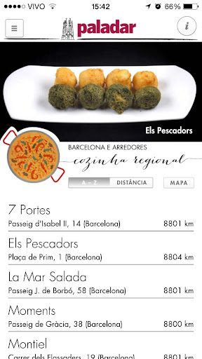 • Indicações organizadas em listas que podem ser visualizadas por ordem alfabética ou de distância – e também no mapa