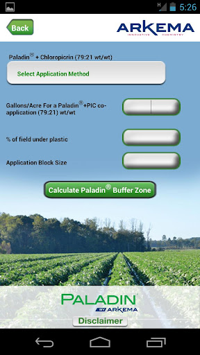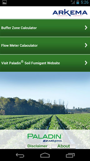 The Paladin® Soil Fumigant Calculator enables users to calculate buffer zone and flow meter settings for applications of Paladin® soil fumigant in the United States, Canada, and Mexico. It also provides direct links to the Paladin® website.