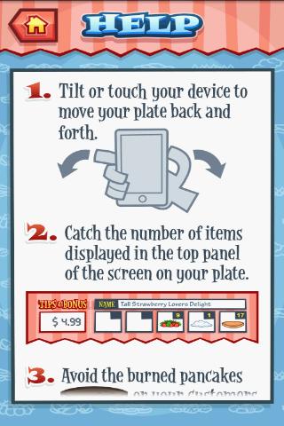 This customer wants his order piled high with everything on it. The order is complete when you catch a burned pancake. But don't worry, the customer won't mind the burned pancake.