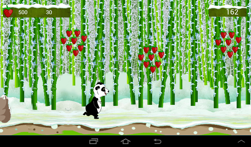 Press anywhere in the screen to Jump. Pressing twice, makes the panda jump double.